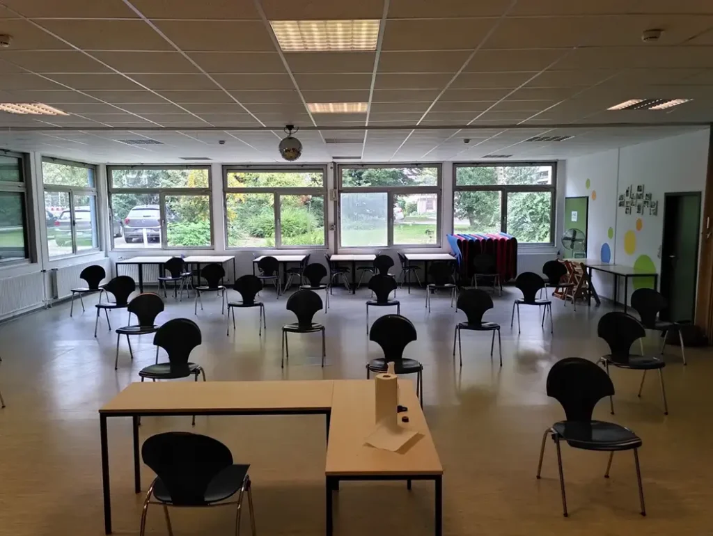 Unser Seminarraum bietet Platz für Workshops, Fortbildungen oder Teamtreffen in ruhiger Atmosphäre. Er ist mit einem Beamer, der sich unkompliziert per Laptop verbinden lässt, und einer voll ausgestatteten Küche (Kühlschrank, Geschirr, Spülmaschine, Kaffeemaschine und Herd) ausgestattet. So können Besprechungen, Schulungen oder Elternabende in angenehmer Umgebung stattfinden – auf Wunsch mit direkter Nutzung der angrenzenden Gemeinschaftsbereiche.